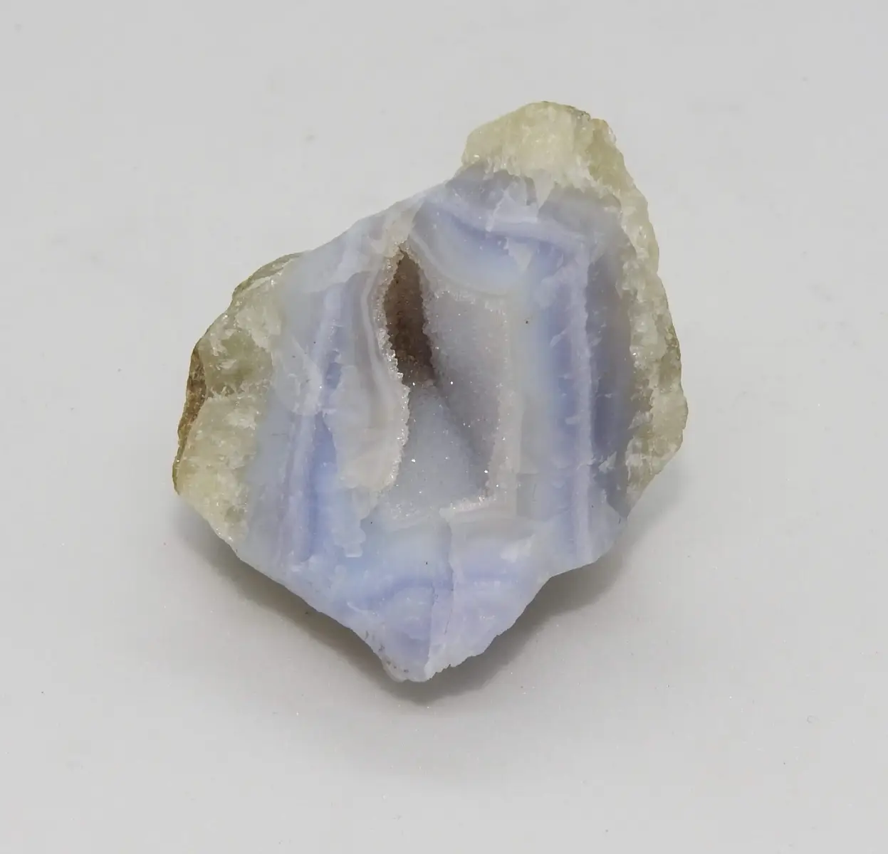 Es una piedra sanadora maravillosa. Su suave energía es calmante y refrescante, trayendo paz mental. Es particularmente eficaz para activar y curar el chakra de la garganta, permitiendo la libre expresión de pensamientos y sentimientos. Abre el camino a la experiencia de las energías superiores. Ésta es una de las grandes piedras nutricias y que dan apoyo. Neutraliza la ira, la infección, la inflamación y la fiebre.