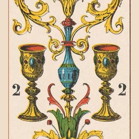 El talento artístico y la creatividad italianos se concentran en esta baraja, que aún asombra con su refinamiento y síntesis simbólica que la convierten en una excelente herramienta para la adivinación.