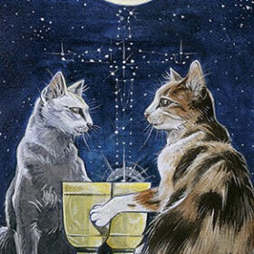 En estas cartas bellamente ilustradas, los gatos, viajan entre los Arcanos y comparten sus secretos con nosotros.